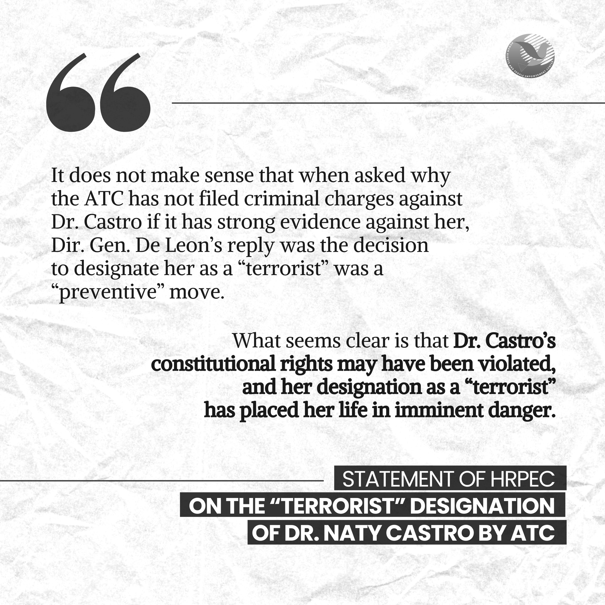 The Human Rights and People Empowerment Center (HRPEC) Raises Concern Over Designation of Dr. Natividad Castro as 'Terrorist' Without Publicly Disclosed Evidence