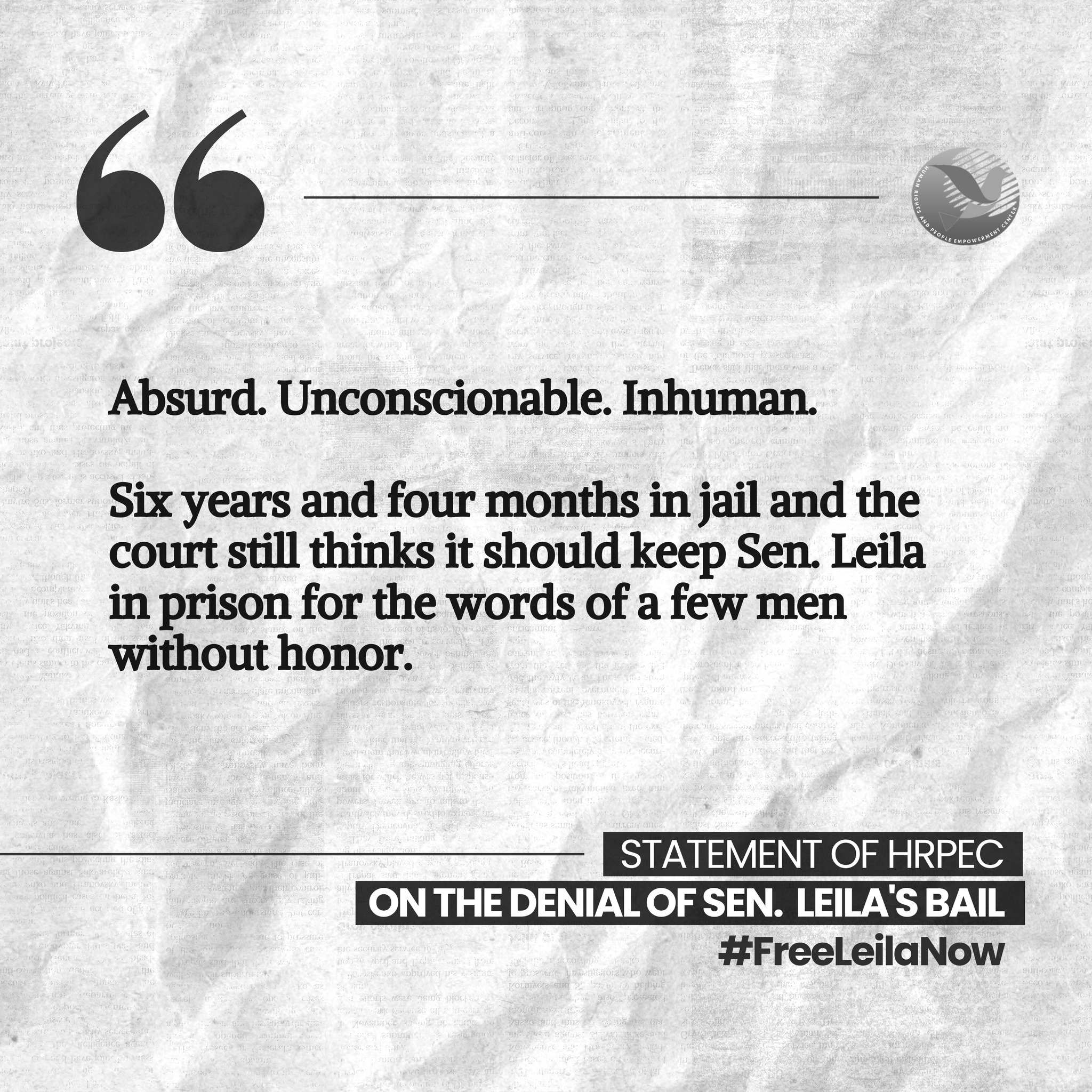 STATEMENT ON THE DENIAL OF SEN. LEILA'S BAIL