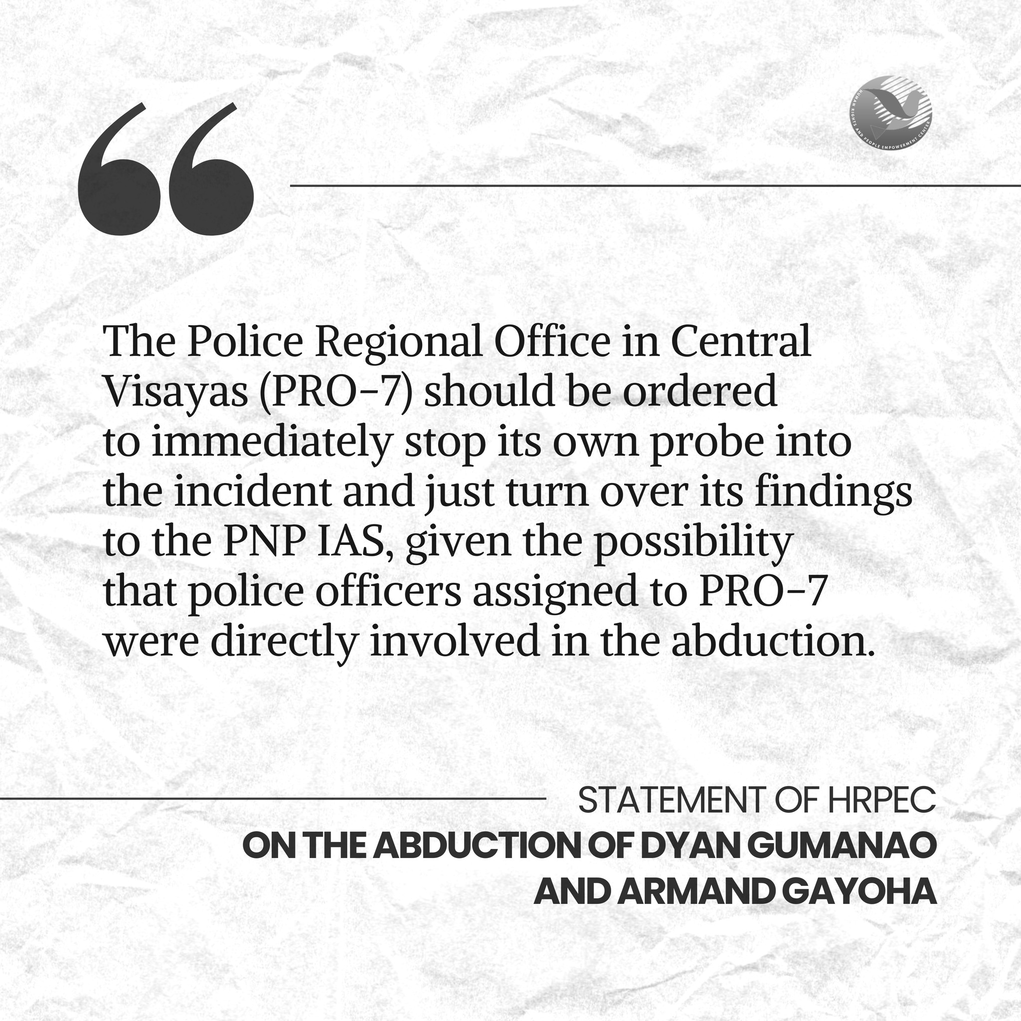The Police Regional Office in Central Visayas (PRO-7) should also be ordered to immediately stop its own probe